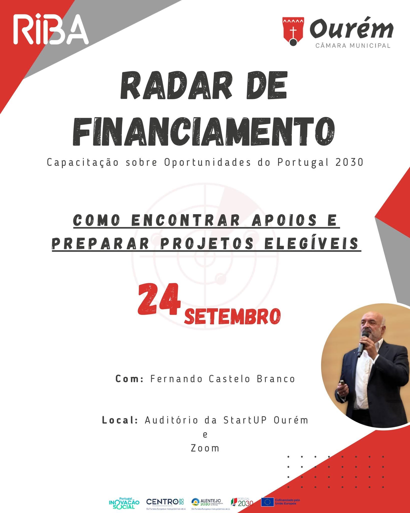 No próximo 24 de setembro, a RIBA, com o apoio do Município de Ourém, organiza uma sessão prática dedicada a como encontrar apoios e preparar projetos elegíveis. O evento decorrerá presencialmente no auditório da StartUP Ourém e também online, através da plataforma Zoom.